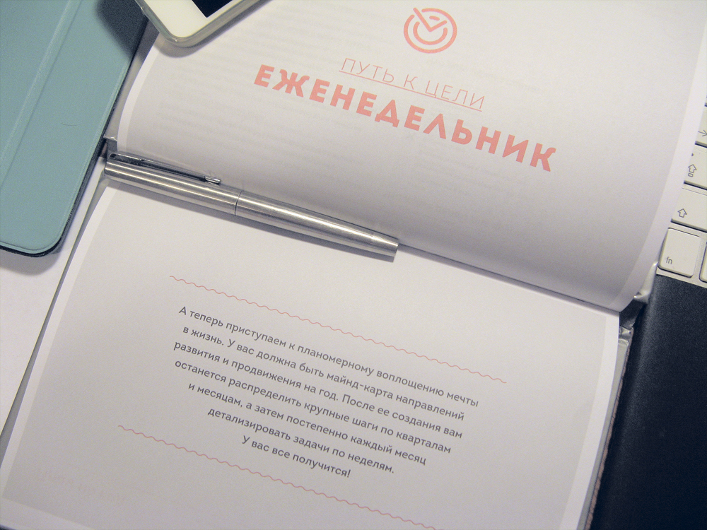 Мне очень понравился еженедельник. В первую очередь тем, что он задает правильные вопросы. А во вторую - подсказывает варианты ответов. Может стать отличным подарком коллегам, друзьям или самому себе :)
