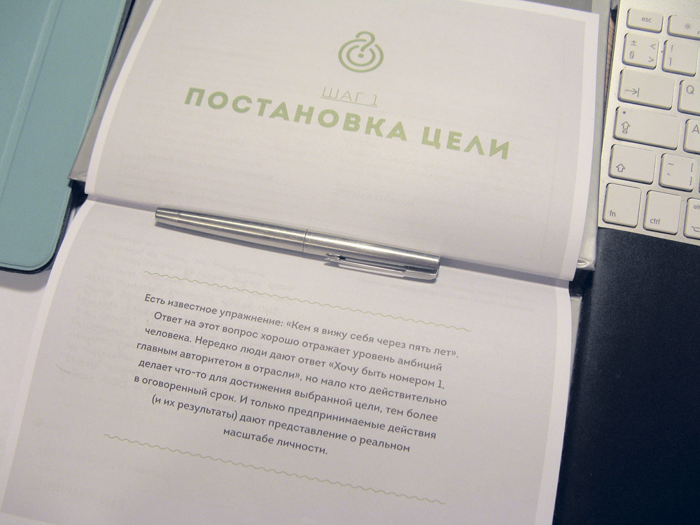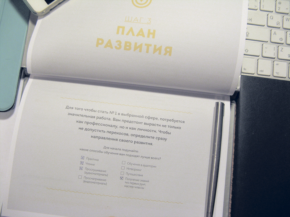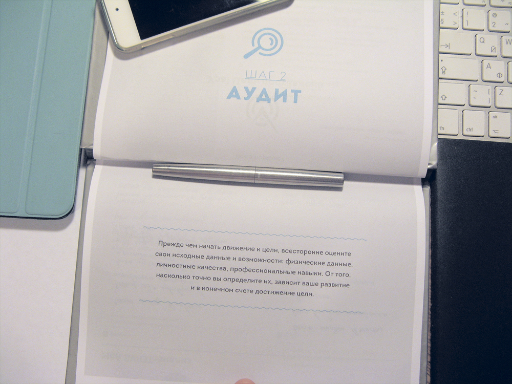 Еженедельник разбит на пять разделов (они называются "Шагами"). Первые два шага позволяют основательно покопаться в себе.