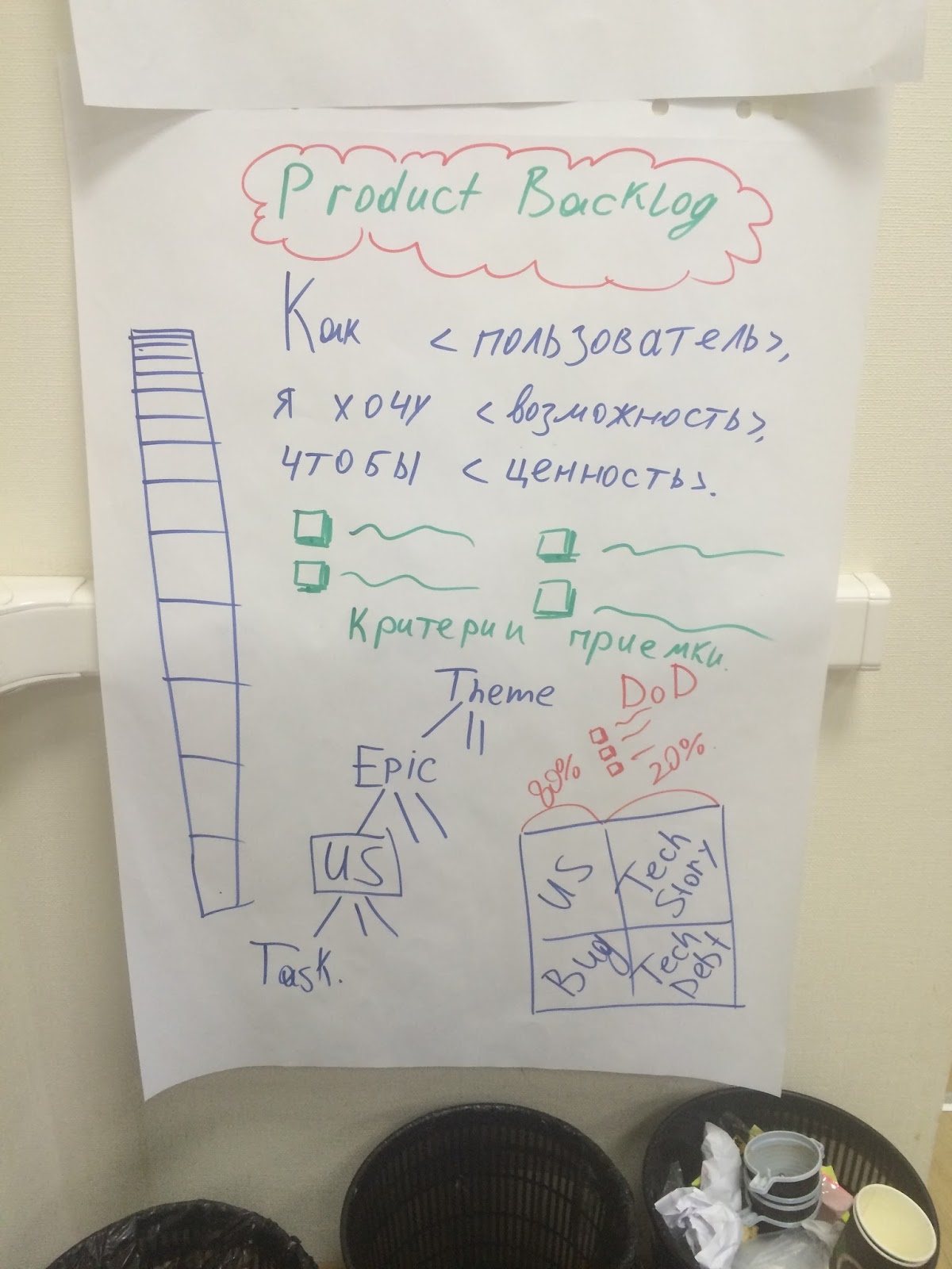 Каждый порядочный Scrum начинается с беклога продукта. Это список задач, которые выстроены по цепочке от наиболее важной. Одна задача называется PBI (Product Backlog Item) и записывается в форме шаблона: «Как <роль пользователя>, я хочу <функционал>, чтобы <ценность>».![]() |
